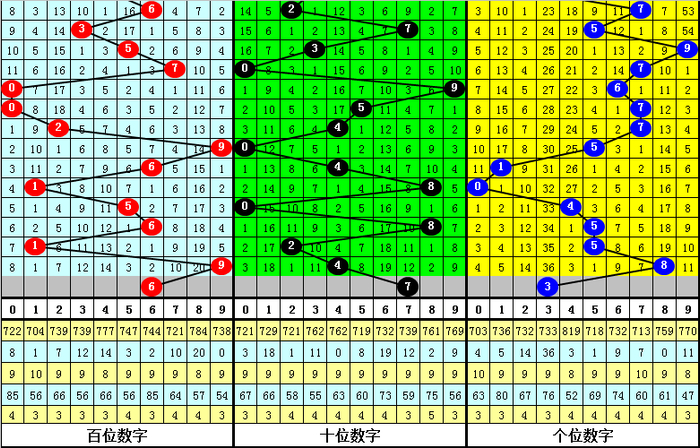 首位号码:上期为:9,遗漏5期,走势活跃,热码最近出现较少,本期着重热码回补,温和6。