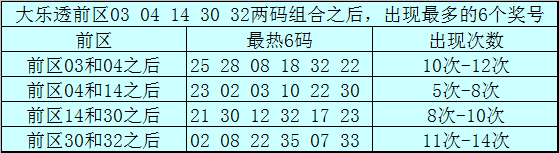 前区两码03和04和之后发扬最热的6个号码为:25、28、08、18、32、22;