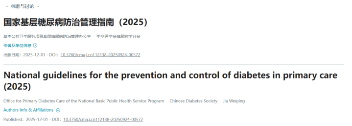 [3] 基本人人卫生行状技俩下层糖尿病防治措置办公室, 中华医学会糖尿病学分会. 国度下层糖尿病防治措置指南(2025)[J]. 中华内科杂志, 2025, 64(12): 1169-1186. DOI: 10.3760/cma.j.cn112138-20250924-00572.