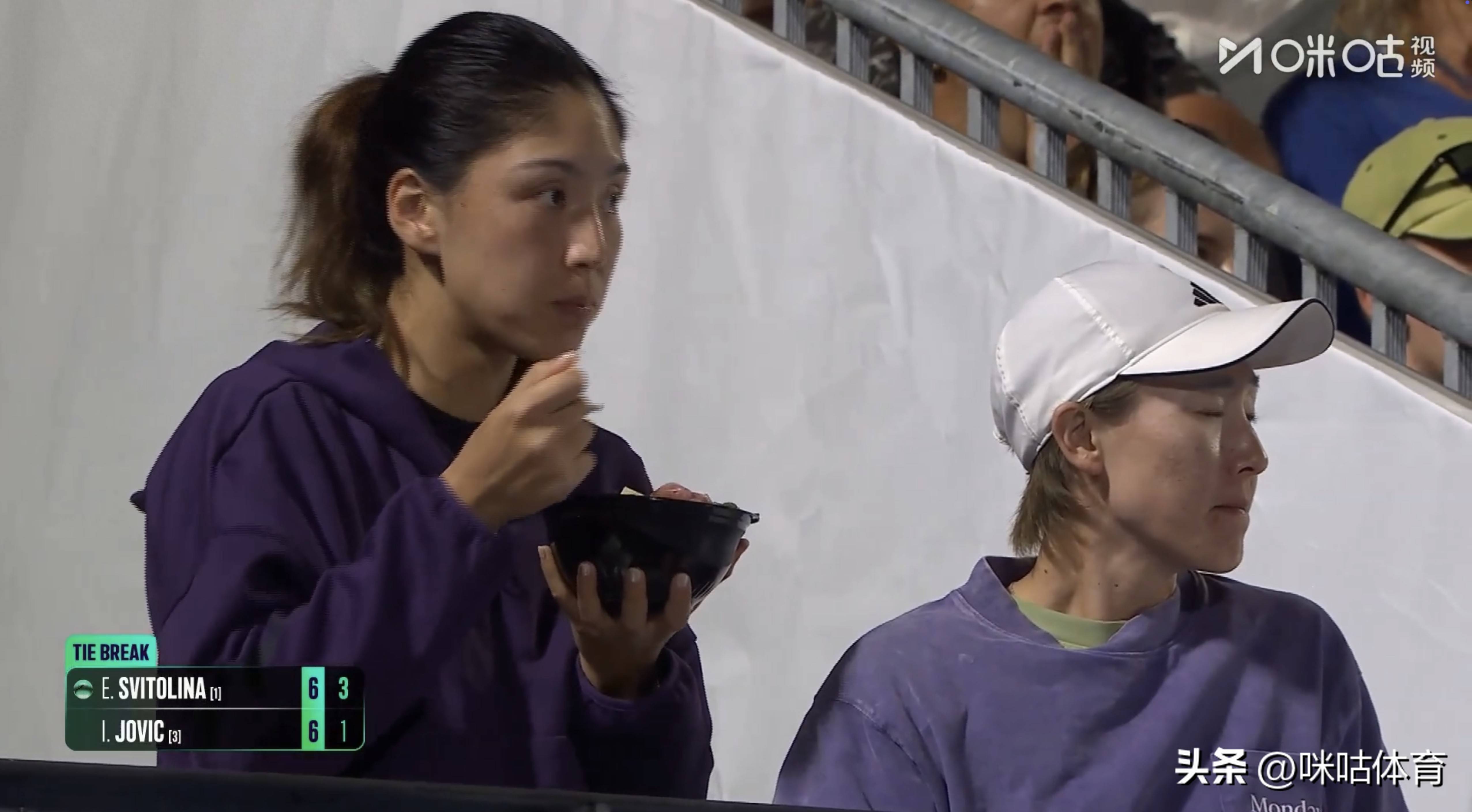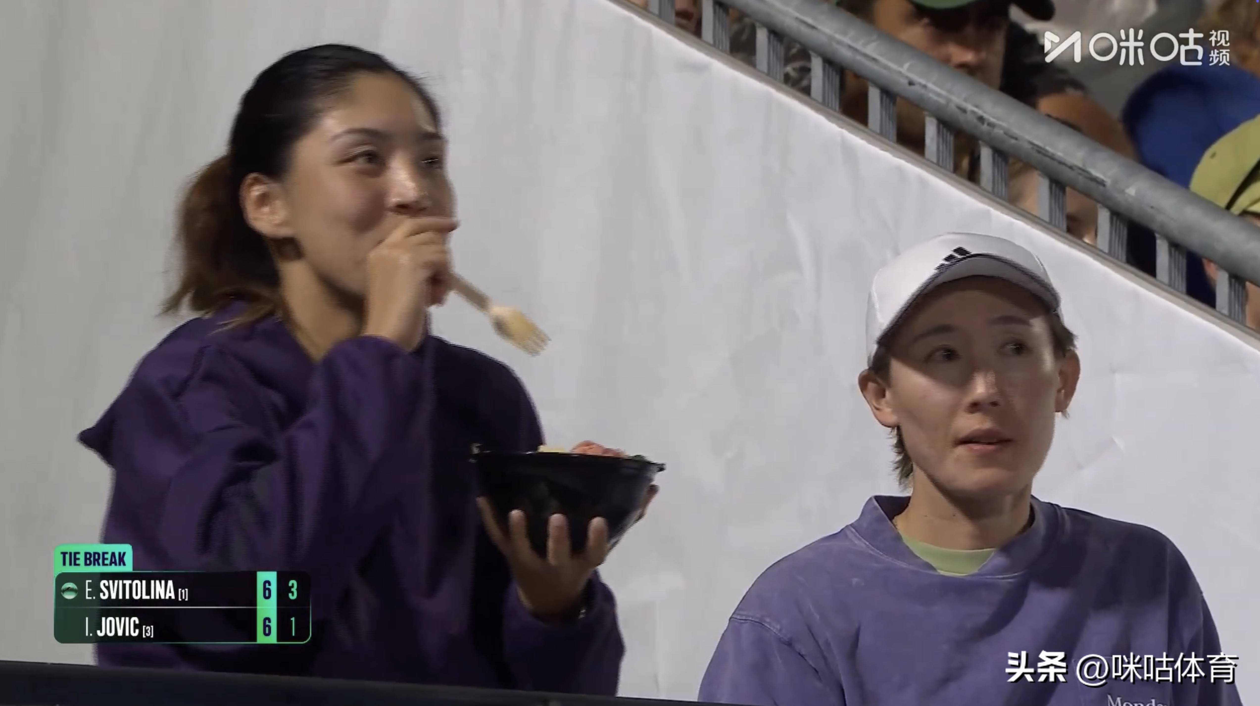 WTA250 奥克兰站女单赛场降生暖心又可笑的一幕!中国金花王欣瑜历经三盘苦战逆转伊埃拉,办事糊口初度闯入硬地巡回赛决赛后,并未收缩备战节拍。在另一场决定她决赛敌手的半决赛中,王欣瑜坐在赛场休息区简便用餐,目力却牢牢锁定赛场,专注不雅察斯维托丽娜与约维奇的对决,谨慎筹备潜在敌手的手艺脾气。