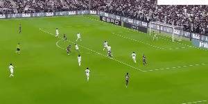45+2’ 维尼修斯左路冲破,内切破门,皇马将比分扳为1比1。