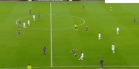 45+4’ 佩德里送出直塞,莱万挑射破门,巴萨2比1再度卓绝。