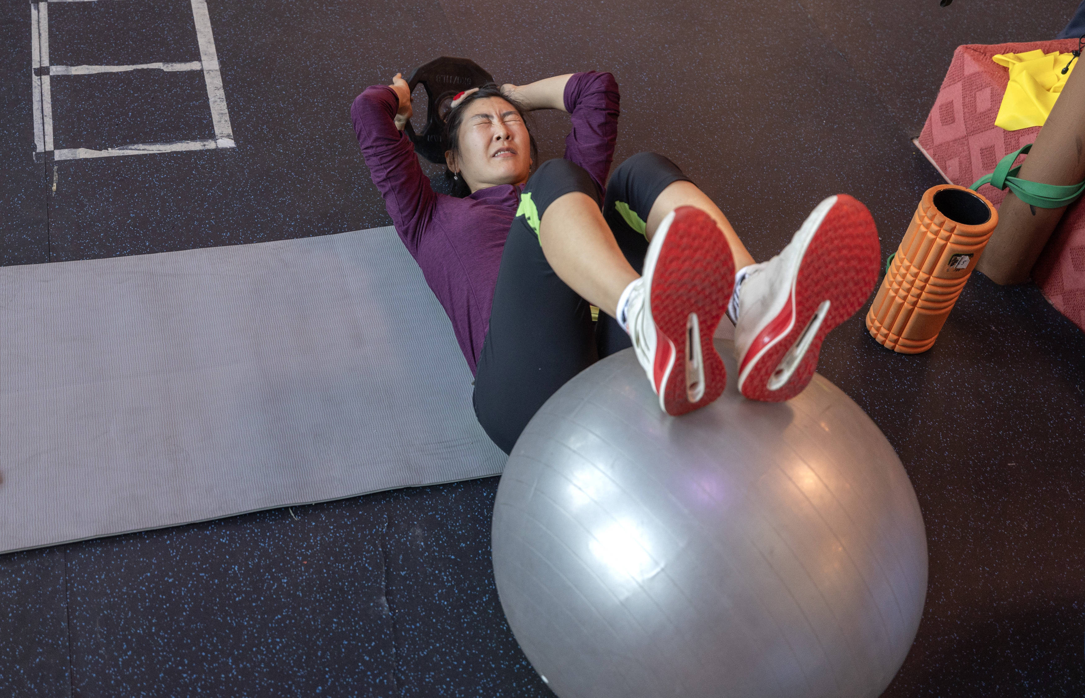 上昼三小时的时刻磨练已毕后,她下昼又提前20分钟来到体能馆。力量、爆发、中枢为止……在一项项磨练中,她展现出的体魄气象并不逊于年青队员。
